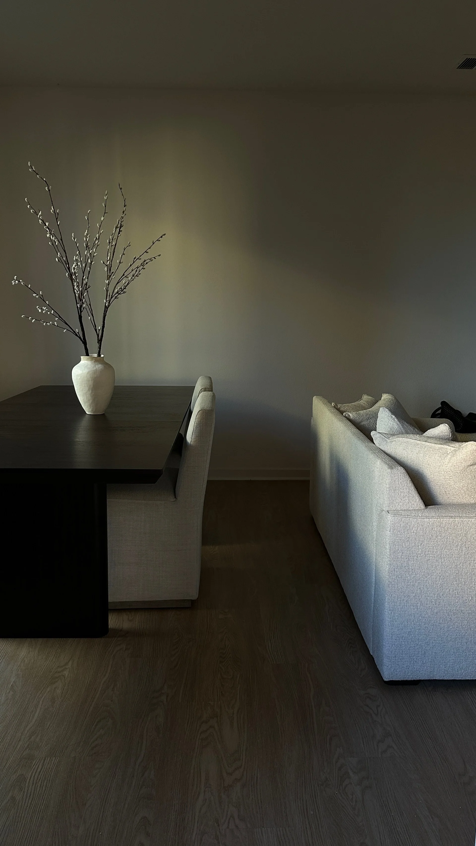What really impressed me, though, was the price. This stunning piece is under $1000, which is incredible for a quality, extendable table that doesn’t compromise on style. It’s durable, functional, and fits perfectly within the minimal, neutral theme I’ve created for my home.